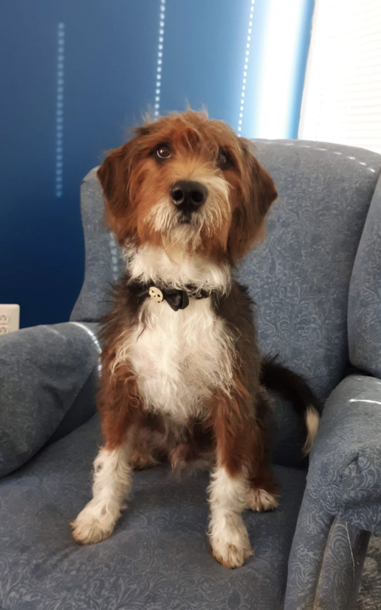 Noodle was a sweet mix of Poodle and Schnauzer — a fairly tall dog with soft curls, especially noticeable when he was young. As he got older, his coat faded a little, but the love his family had for h...